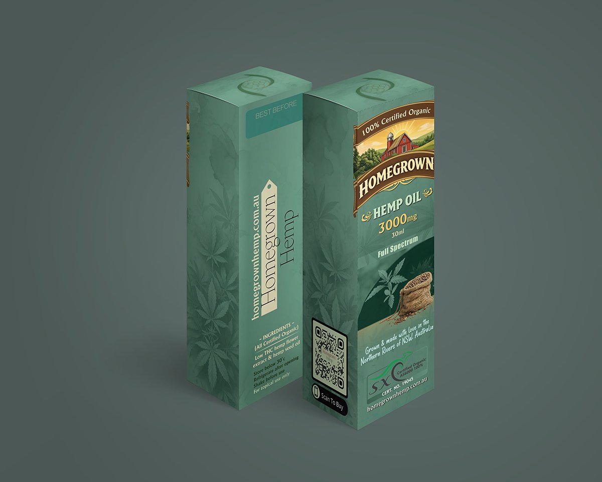 Our homegrown hemp oil is carefully crafted using certified organic, Australian-grown hemp to deliver a pure and potent full-spectrum extract. It contains naturally occurring cannabinoids, terpenes, and plant nutrients designed to support a balanced lifestyle. Grown in the Northern Rivers and sustainably produced, it is free from pesticides, herbicides, and synthetic chemicals.